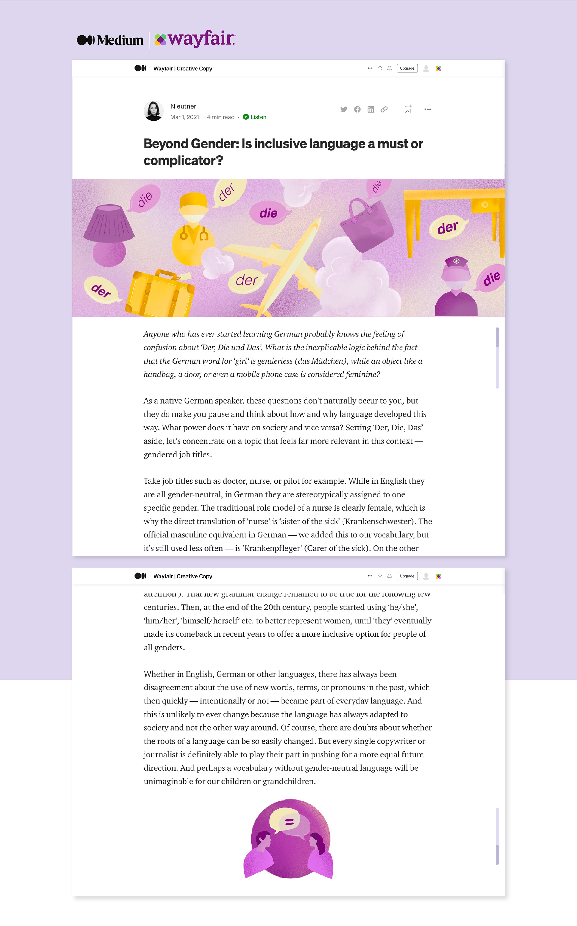 Editorial Illustrations for articles written by Wayfair EU copywriters on Medium platform.