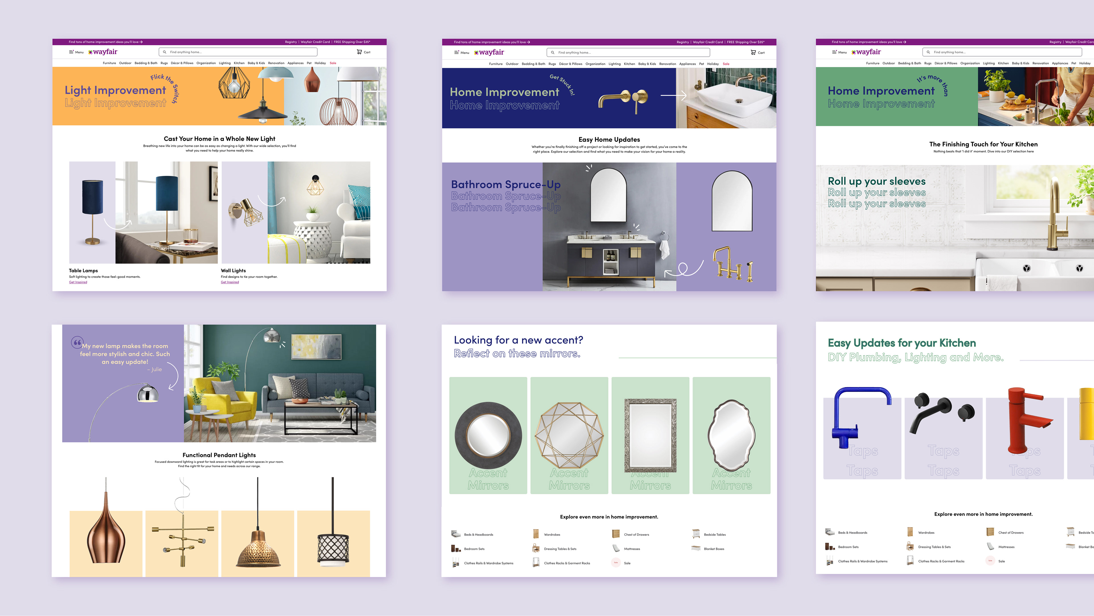 ...and Wayfair’s home improvement range will be a central part of bringing our customers’ vision for their home to life. With this concept we will invite our customers into the home refresh mindset with design that is suggestive of a moodboard. Combining lifestyle and SKU silo imagery, icons and text will put our products into a look and feel that is unique to home improvement.