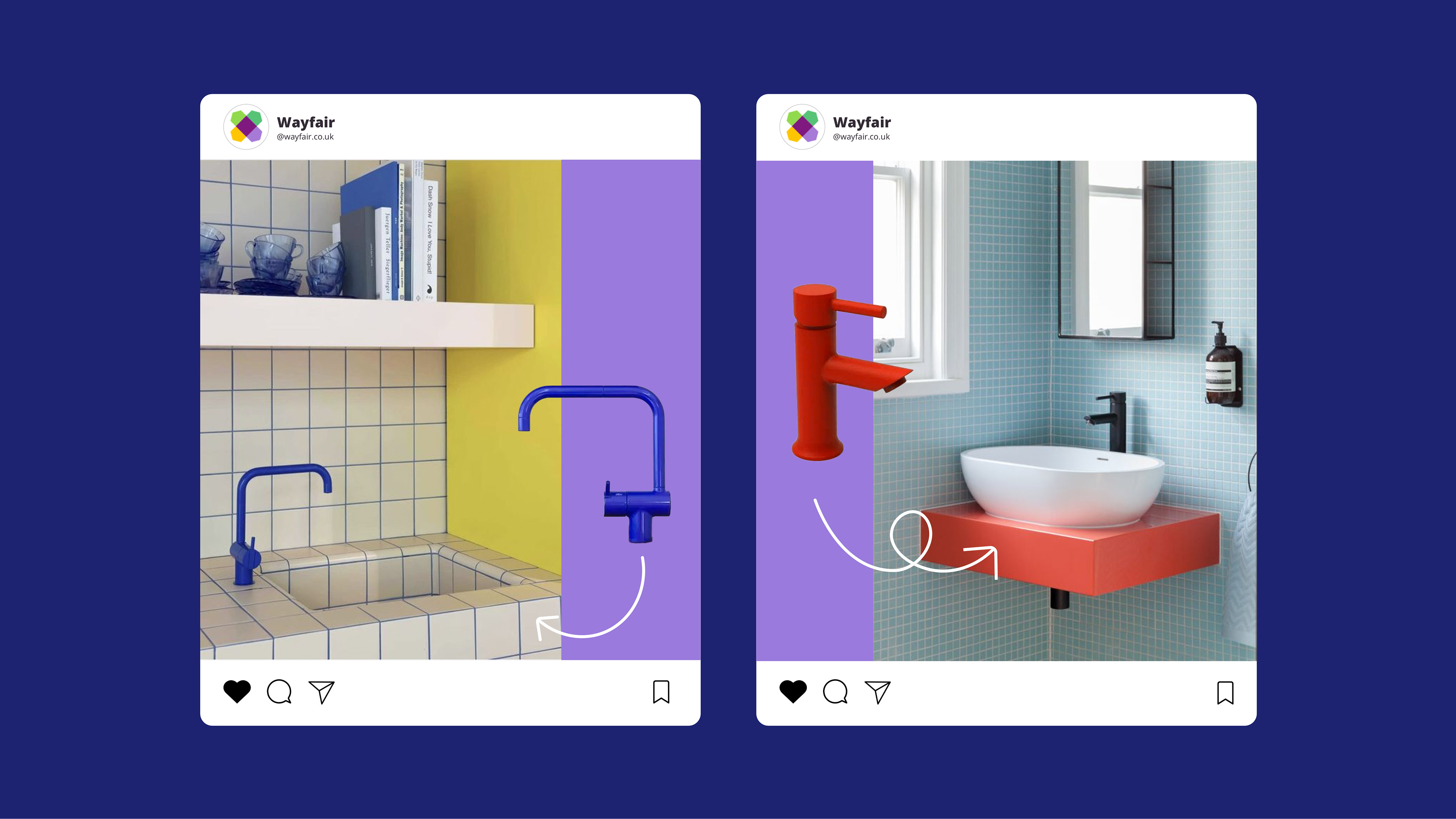Graphic elements such as arrows and lines will be used to bring emphasis to products and copy, offering narrative direction in our assets such as ‘before and after’ or ‘refreshing your kitchen is as easy as 1→2→3’. Additional copy will allow us to ‘annotate’ our assets with additional product details, quality indicators and price points.