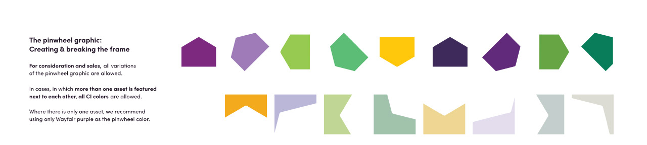 colours to typography. The pinwheel from the logo is used to frame our assets and